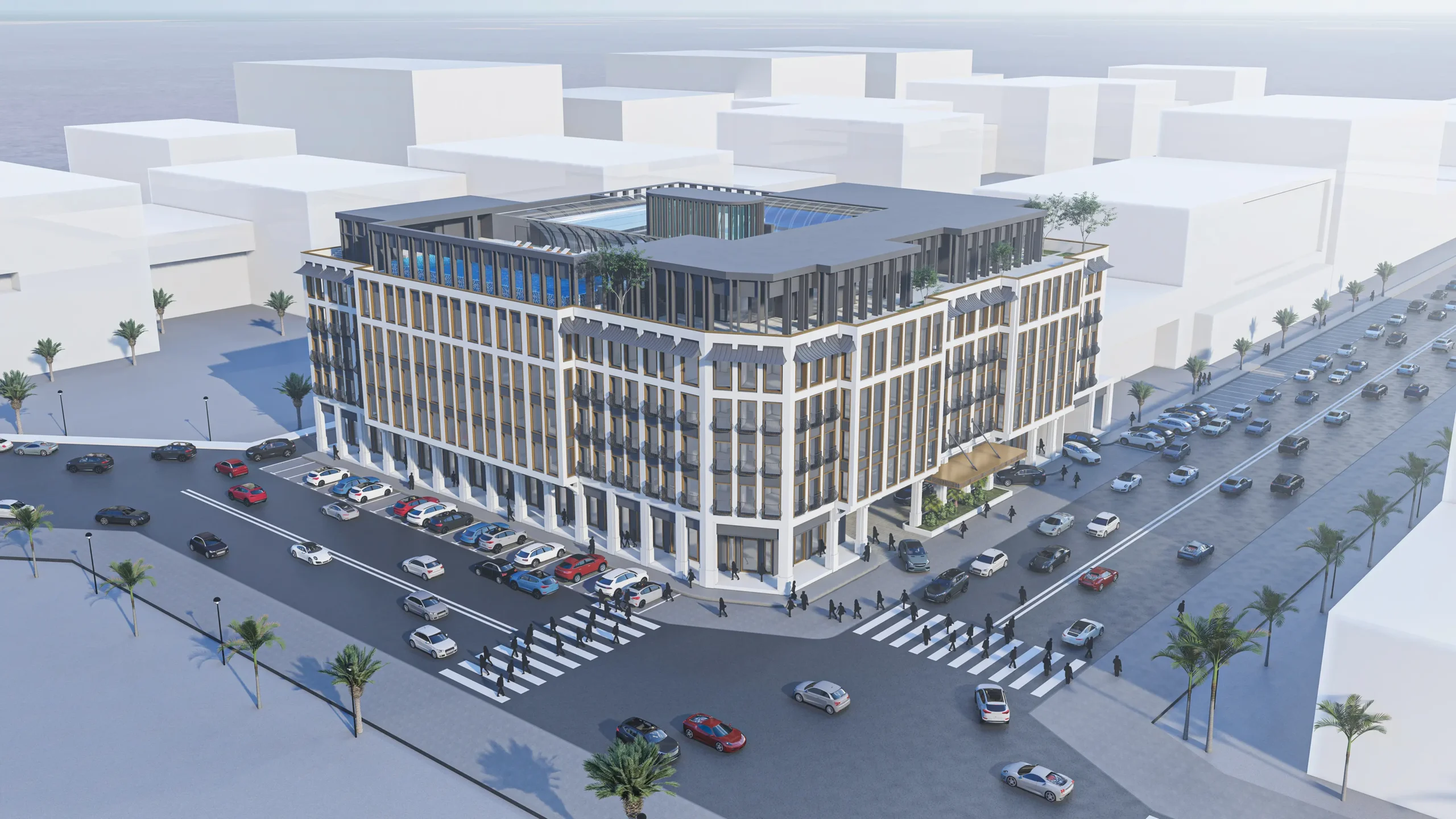 The hotel will feature world-class amenities, including 24/7 reception and concierge services, a selection of restaurants, a business center, and leisure facilities such as a rooftop swimming pool and terrace, gymnasium, and spa. Complementing the hotel, the office spaces are designed with state-of-the-art facilities to provide a comfortable and efficient working environment, catering to modern business needs.